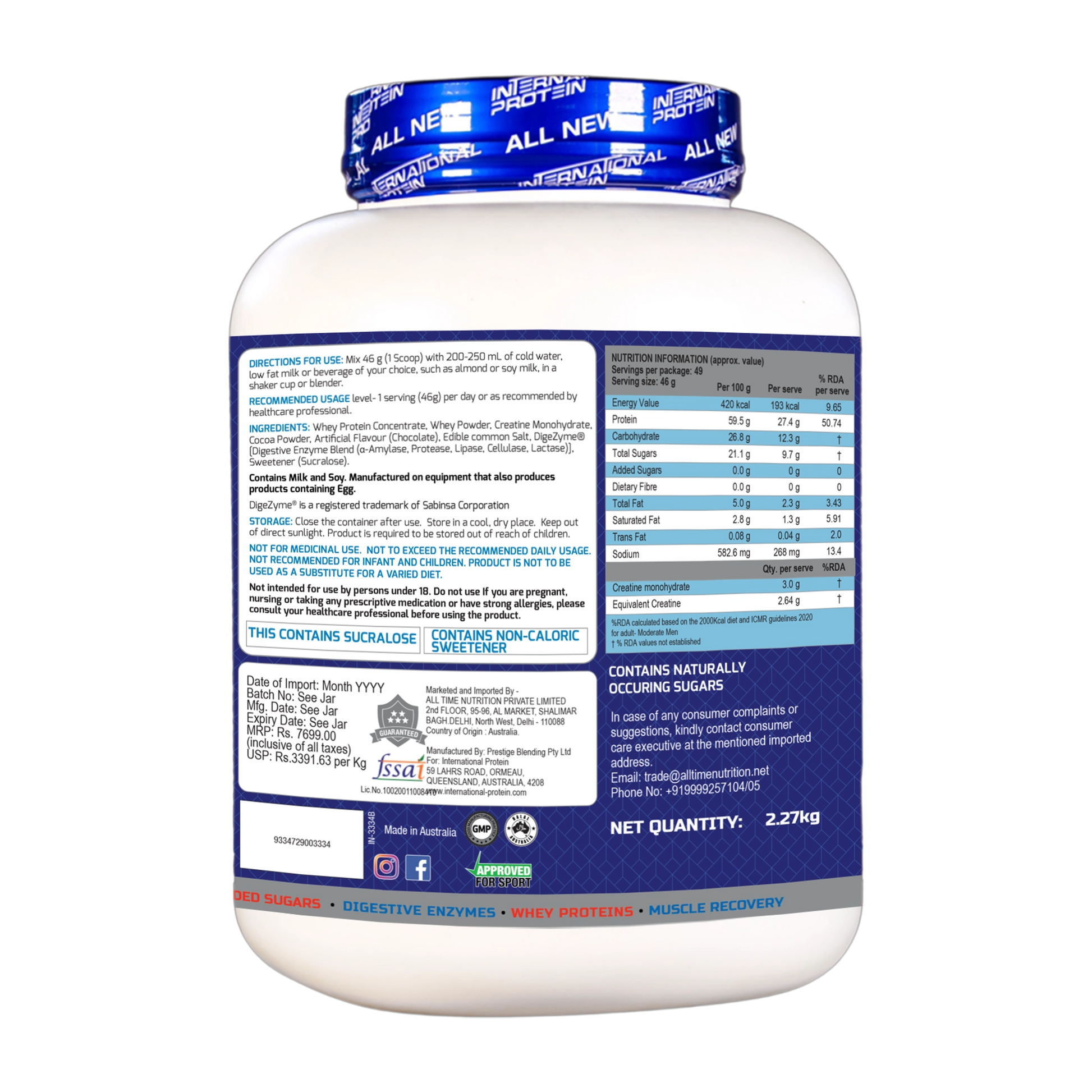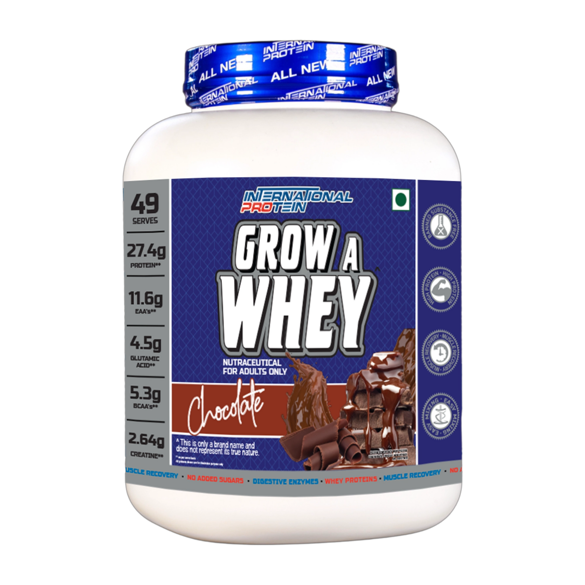 International Protein Grow A Whey Protein Chocolate 5 Lbs | Creatine 2.7 Gm | Protein 27.4 Gm | Product Expiry - 28/Nov/25